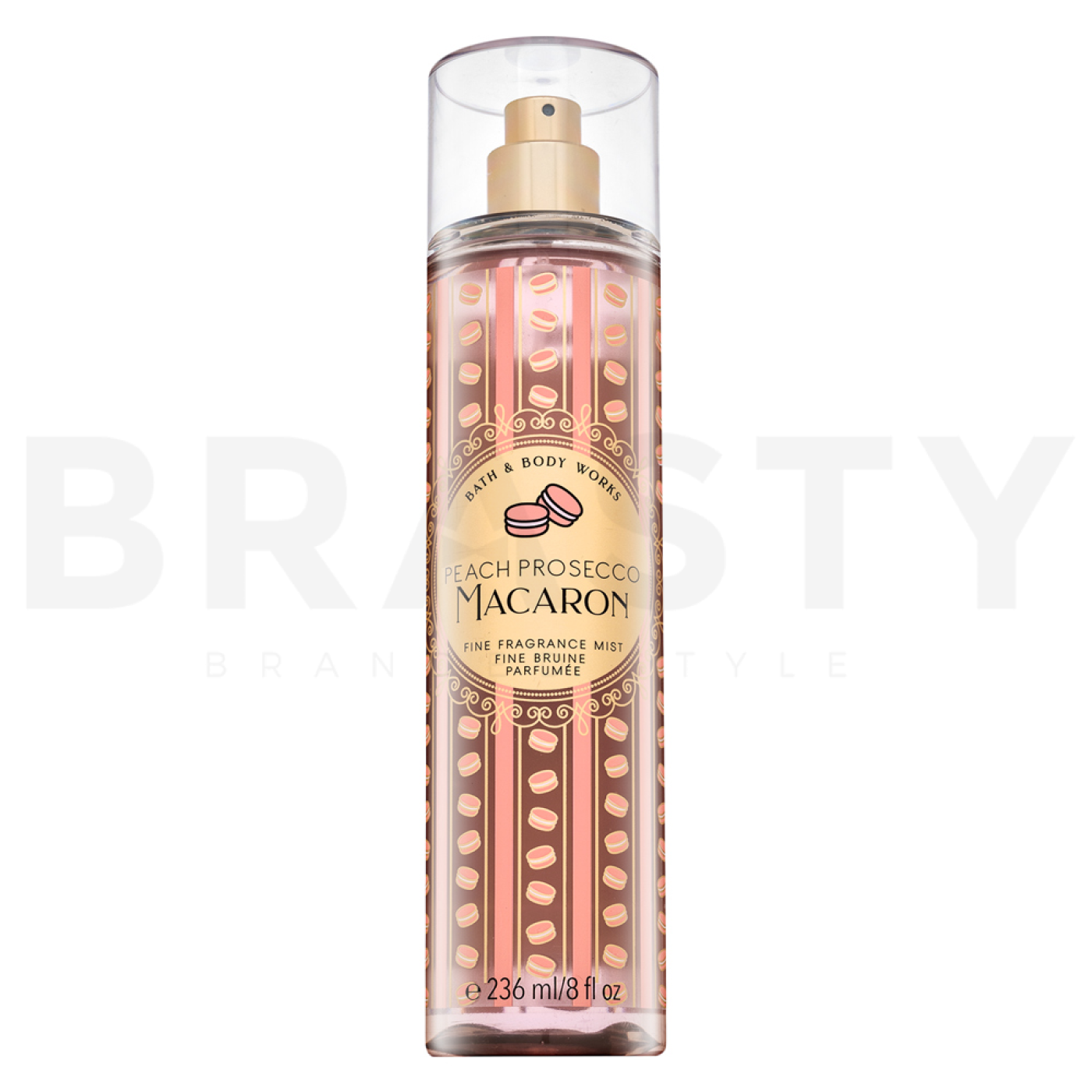 Use the Bath & Body Works Peach Prosecco Macaron body spray after showering or bathing on clean skin. Spray a light mist over your entire body from a distance of about 15 cm. For best results, apply to pulse points such as wrists, neck, and behind the ears to ensure the fragrance lasts all day. The spray is ideal for layering with other products from the Peach Prosecco Macaron line for a more intense experience.