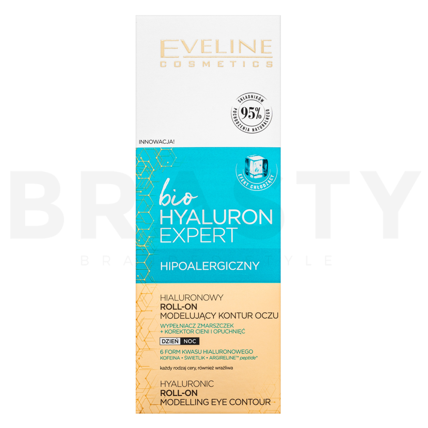 Discover revolutionary eye care with Eveline Bio Hyaluron Eye Roll-On Modelling Eye Contour. This innovative firming eye cream is designed to provide comprehensive care for all skin types. The Eveline brand is renowned for its advanced technologies and natural ingredients, ensuring maximum efficacy and safety. This product is ideal for women seeking an effective solution for hydration, regeneration, and firming of the eye area.