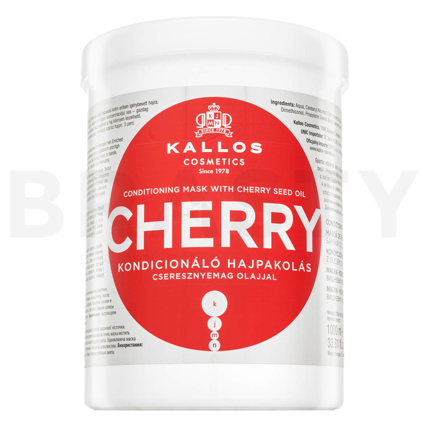Discover the magic of Kallos Cherry Conditioning Mask, a nourishing mask that provides your hair with intense hydration and care. This mask is the perfect choice for women who desire healthy and shiny hair. The Kallos brand is known for its ability to combine quality ingredients with innovative technologies, and this mask is a testament to that. With its rich, creamy texture, it applies easily and leaves your hair soft and silky to the touch.
